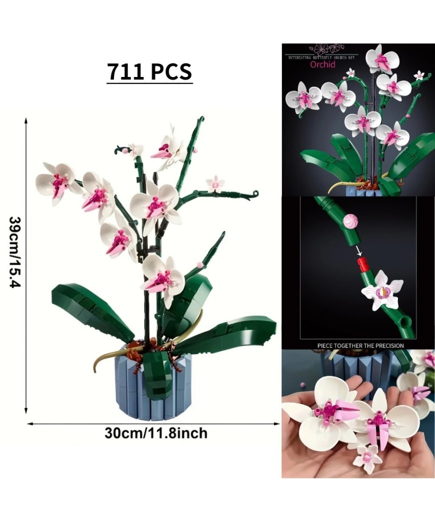 Détails Précis : Avec 711 pièces en ABS de haute qualité, chaque pétale, tige et racine est reproduit pour capturer l'élégance naturelle de l'orchidée.
