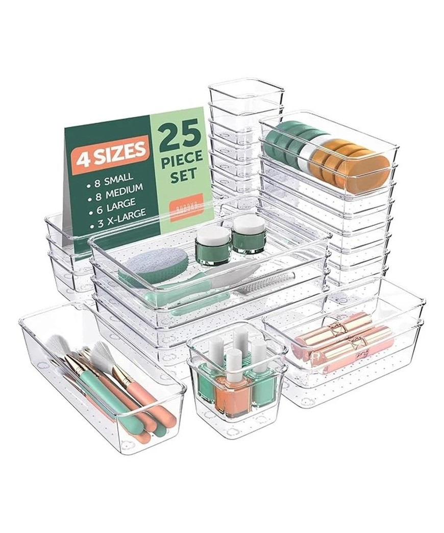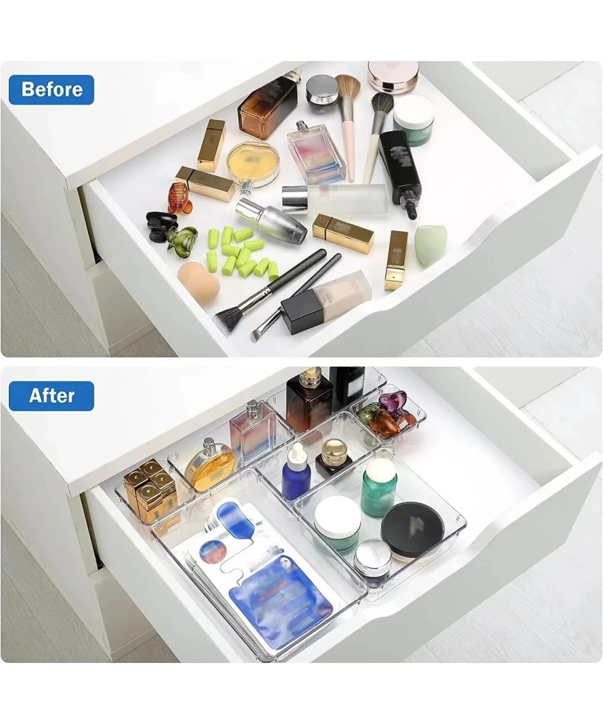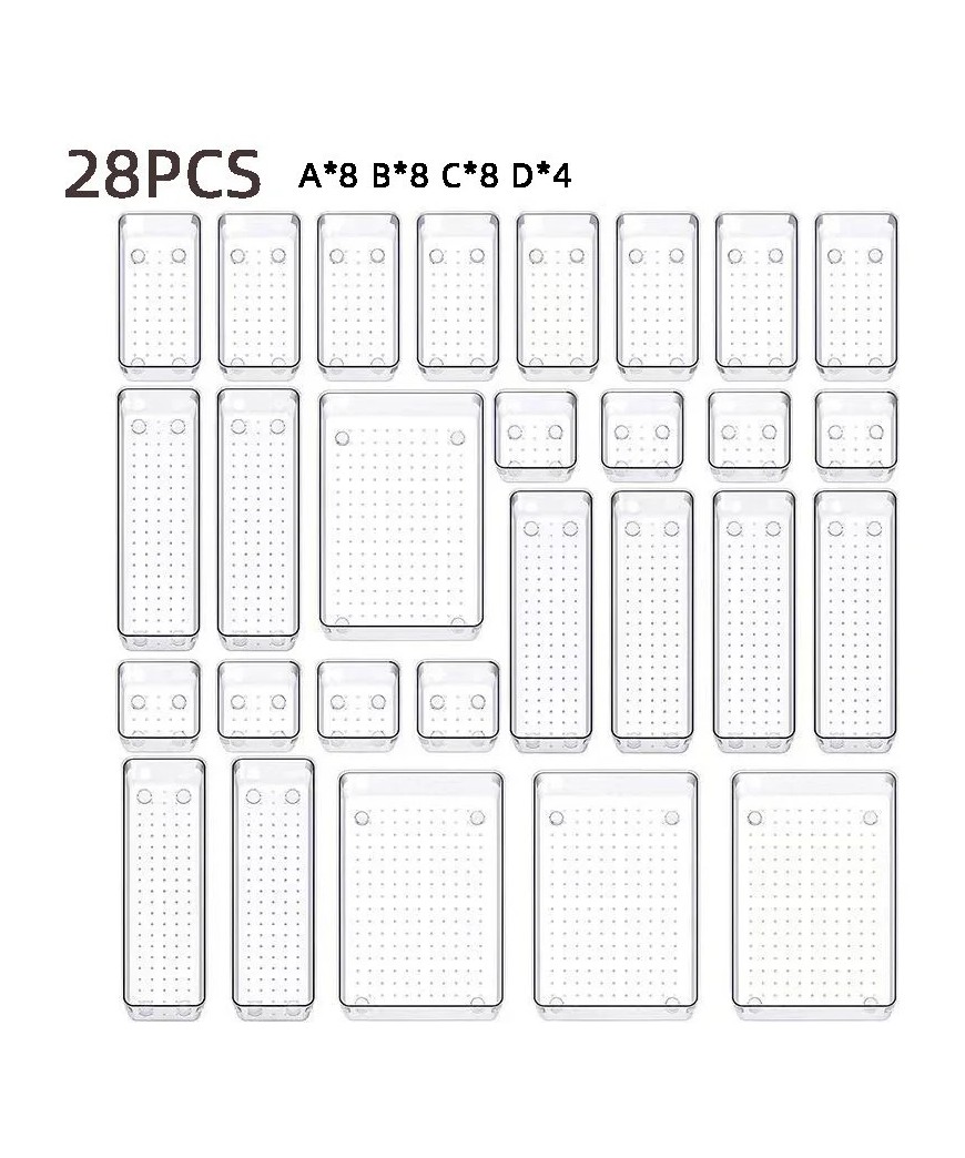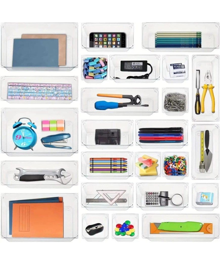Mettez fin au désordre avec ce système de rangement intelligent et totalement personnalisable. Ce lot de bacs transparents haute résistance s'adapte à tous vos tiroirs pour organiser vos cosmétiques, fournitures de bureau ou ustensiles de cuisine en un clin d'œil. Visibles et empilables, ces modules maximisent votre espace tout en restant élégants et discrets.