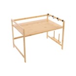 Doublez votre espace de rangement en un clin d'œil avec notre étagère en bambou véritable. Conçue pour surplomber votre micro-ondes ou votre mini-four, elle offre un plateau supérieur solide pour vos épices et ustensiles, complété par 4 crochets latéraux pour vos accessoires. Un design chaleureux pour une cuisine toujours ordonnée.